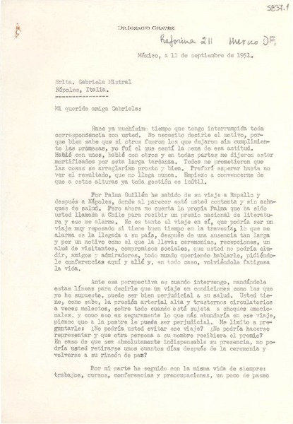 [Carta] 1941 sept. 23, México D.F. [a] Gabriela Mistral, Petrópolis, Brasil [manuscrito] Alfonso Reyes.