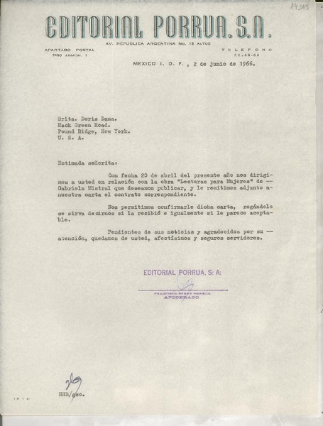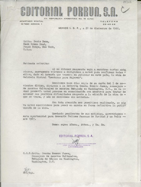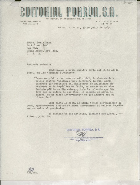 Correspondencia - Manuscritos mexicanos - Dana, Doris - Iduarte, Andrés