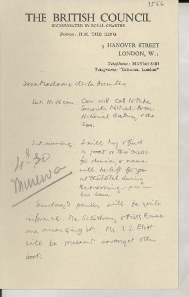 Mistral, Gabriela - Manuscritos ingleses - Huxley, Julián - Correspondencia - Autores ingleses