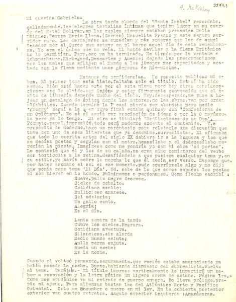 Mistral, Gabriela - Manuscritos ingleses - McKinlay, A. - Correspondencia