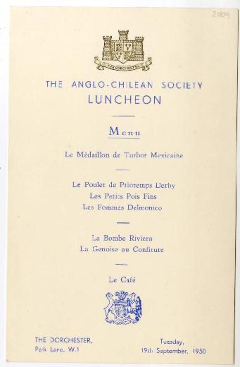 Menú - Sociedad Anglo-Chilena de Londres - Manuscritos chilenos - Manuscritos ingleses