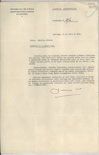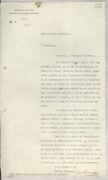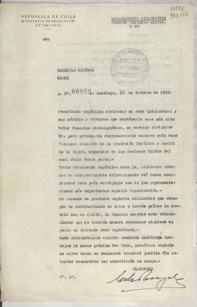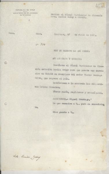 Diplomáticos - Mistral, Gabriela - Manuscritos chilenos - Correspondencia