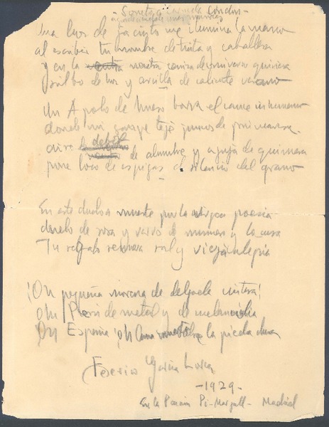 Soneto a Carmela Condon [manuscrito] Federico García Lorca.