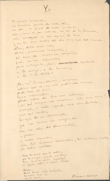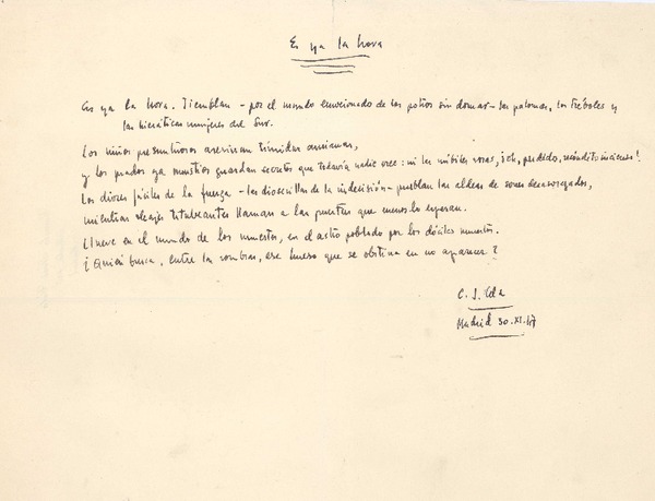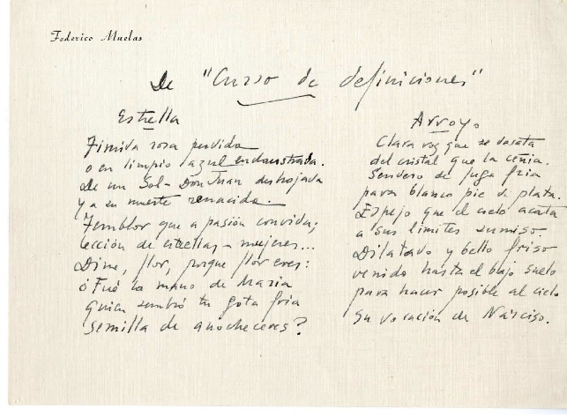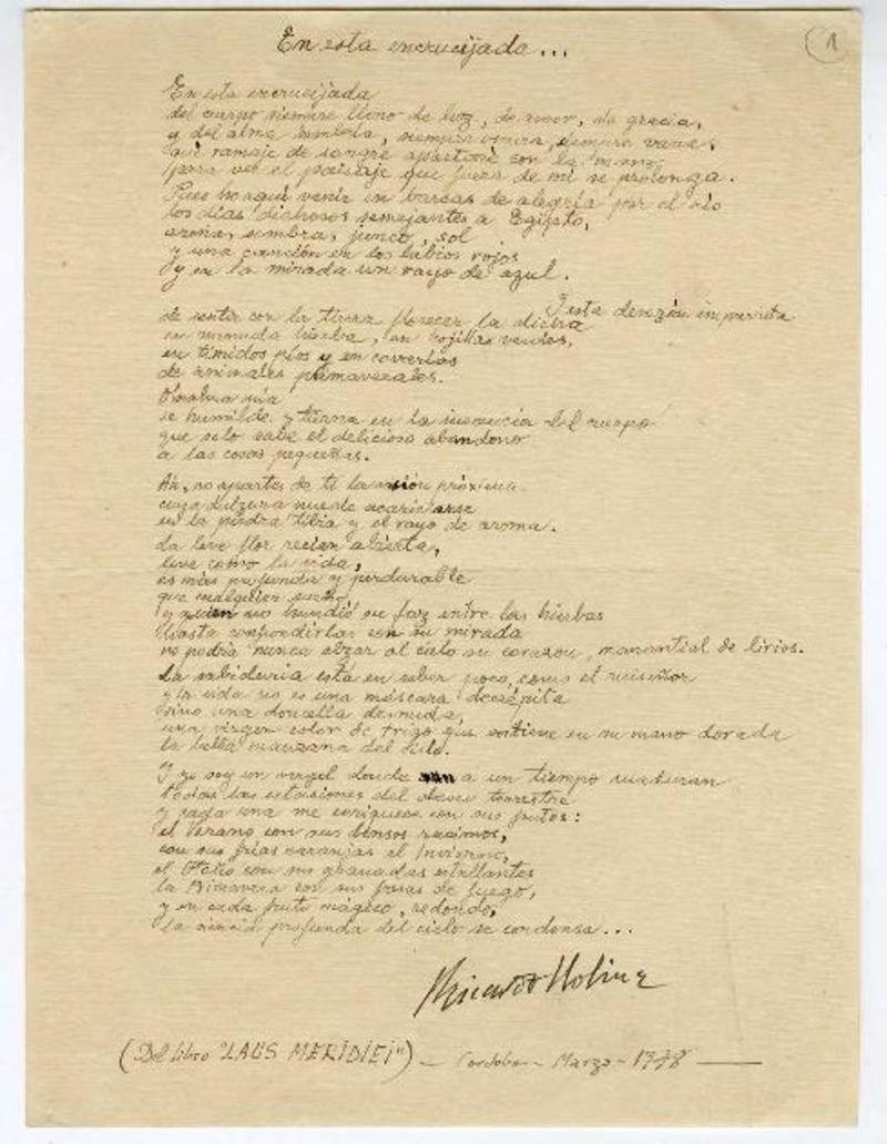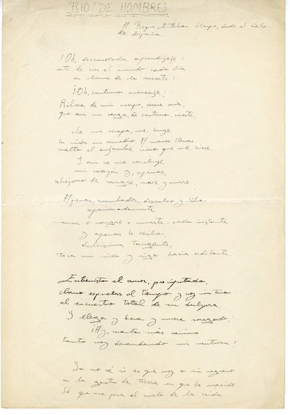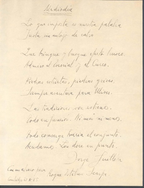 En esta encrucijada... [manuscrito] Ricardo Molina.