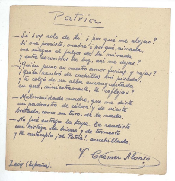 Patria [manuscrito] Victoriano Crémer Alonso.