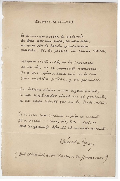 Incompleta belleza [manuscrito] Alejandro Gaos.