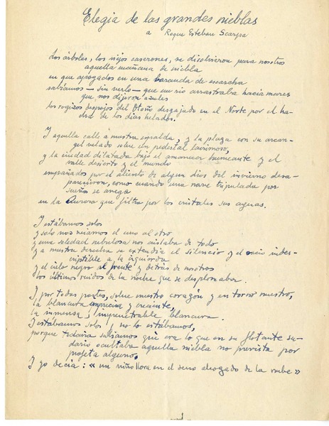 Elegía de las grandes nieblas [manuscrito] Ricardo Molina Tenor (Eugenio Solis).