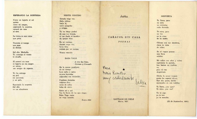 Caracol sin casa [manuscrito] Sabka Goldberg.