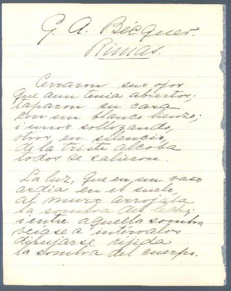 G. A. Bécquer, rimas [manuscrito] Gustavo Adolfo Bécquer ; en transcripción de puño y letra de Gabriela Mistral.