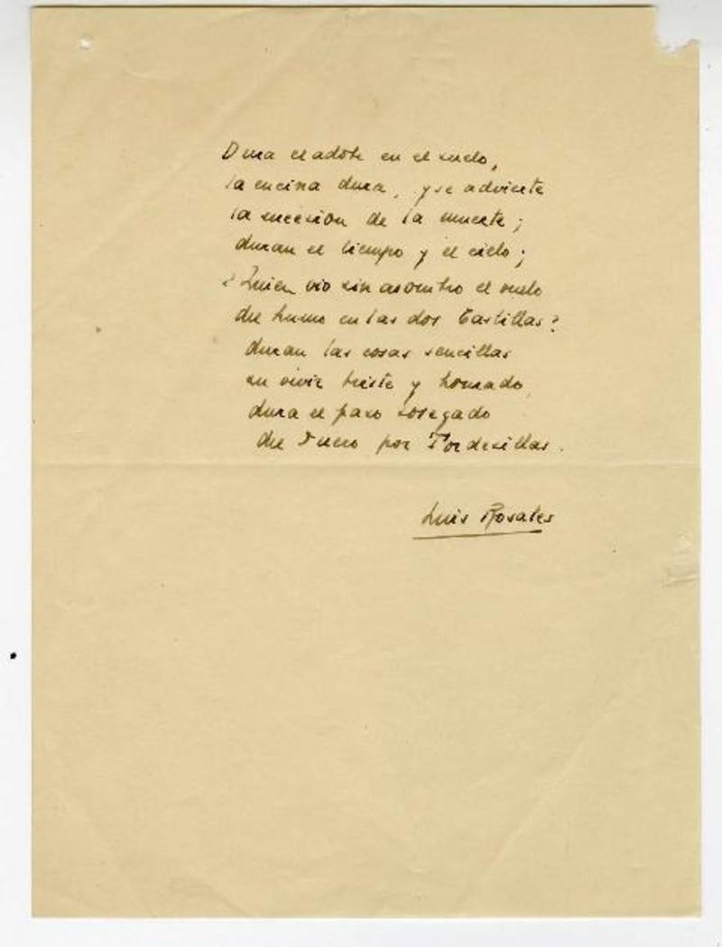 [Dura el adobe en el suelo,...] [manuscrito] Luis Rosales.