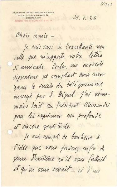 [Carta] 1936 ene. 21, Bonn, [Alemania] [a] [Gabriela Mistral] [manuscrito] E. R. Curtius.