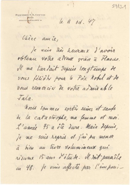[Carta] 1947 dic. 11, Bonn, [Alemania] [a] [Gabriela Mistral] [manuscrito] E. R. Curtius.