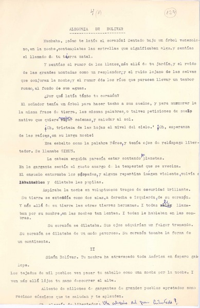 Evocación de Bolivar [manuscrito] [Oscar Castro].