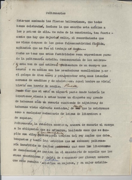 Poltronerias [manuscrito] Gabriela Mistral.