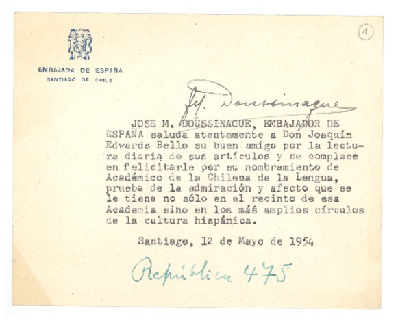 Fotografías - Autores chilenos - Doussinague, José M. - Embajadores - Scarpa, Roque Esteban