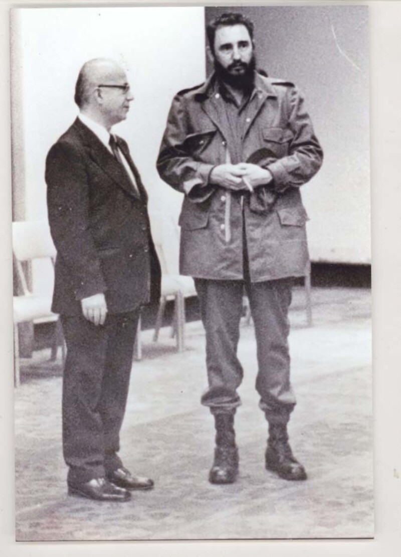 [Gonzalo Rojas y Fidel Castro en la embajada de Chile en Cuba] [fotografía].