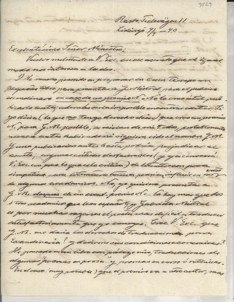 [Carta] 1940, abr. 9, Lidingo, [Suecia] [a] Señor Ministro [manuscrito] Karl August Hagberg.