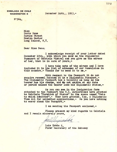 Dana, Doris - Manuscritos estadounidenses - Correspondencia - Mistral, Gabriela