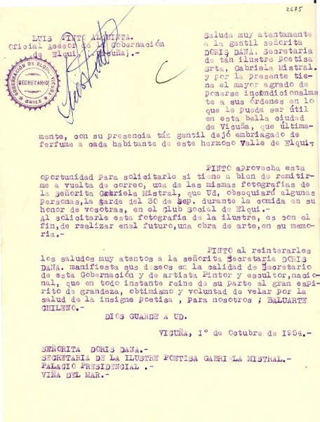 Correspondencia - Manuscritos chilenos - Dana, Doris - Polanco Nuño, Santiago