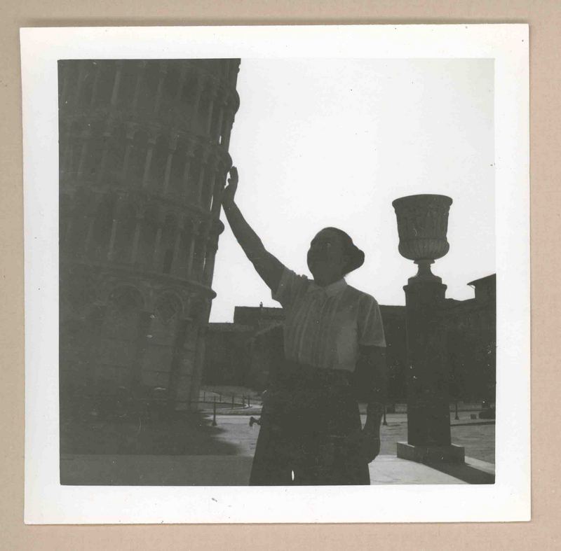 [Marina Núñez del Prado en la Torre de Pisa] [fotografía].