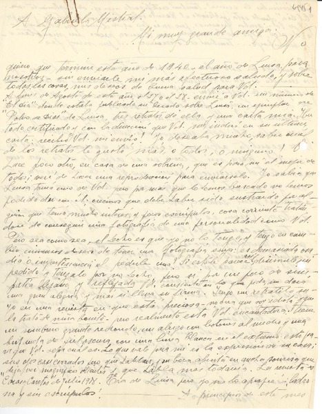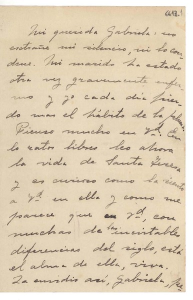 [Carta] 1925 mayo 8, Montevideo [a] Gabriela Mistral [manuscrito] Juana de Ibarbourou.