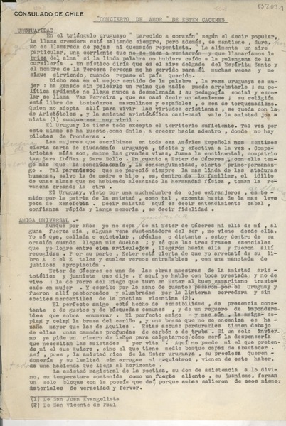 Concierto de amor de Esther de Cáceres [manuscrito] Gabriela Mistral.