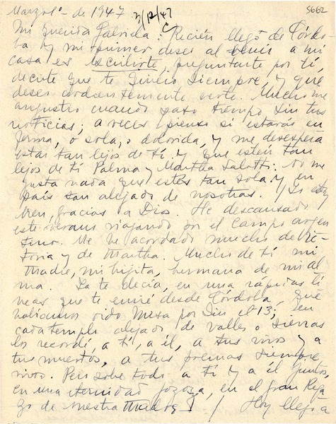 [Carta] 1947 mar. 1, [Uruguay] [a] Gabriela [Mistral] [manuscrito] Esther de Cáceres.