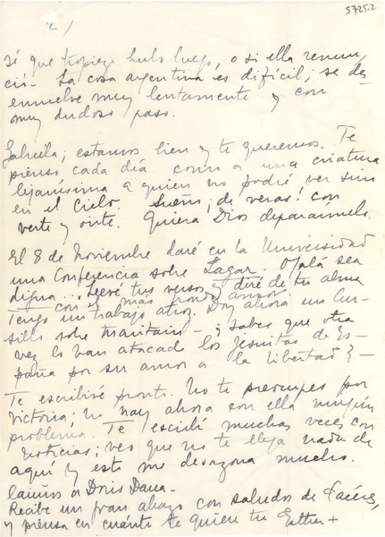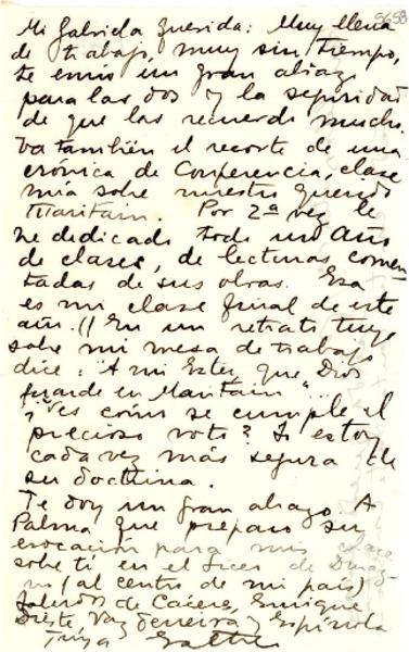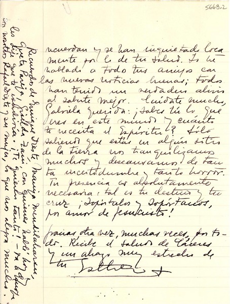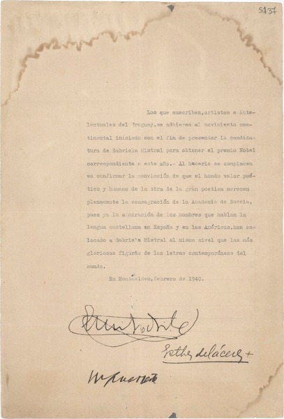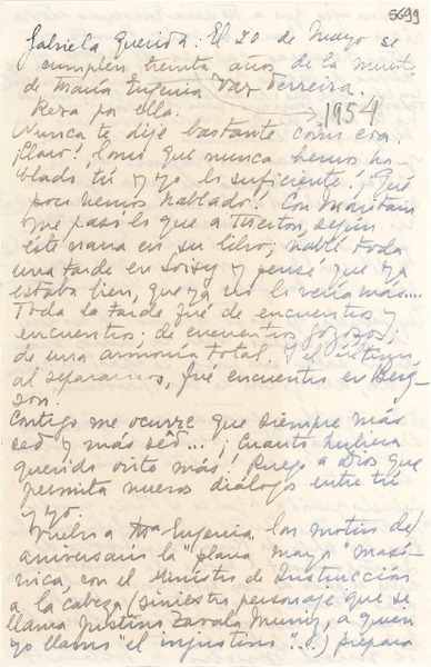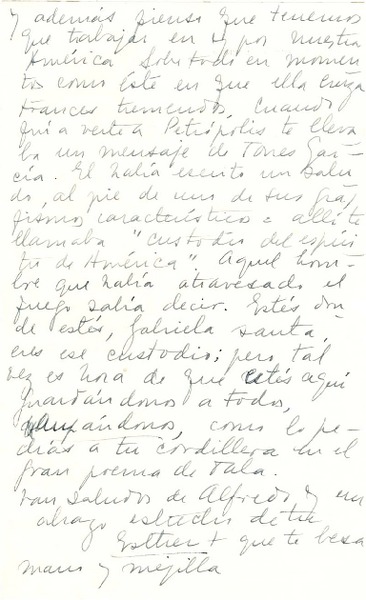 Mistral, Gabriela - Cáceres, Esther de - Manuscritos uruguayos - Autoras uruguayas - Correspondencia