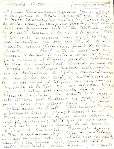 [Carta] 1945 sept. 17, [Uruguay] [a] Palma Guillén [manuscrito] Esther de Cáceres.