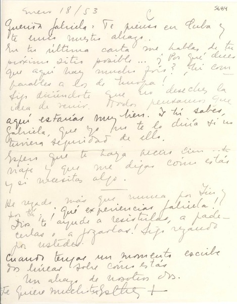 [Carta] 1953 ene. 18, [Uruguay] [a] Gabriela [Mistral] [manuscrito] Esther [de Cáceres].