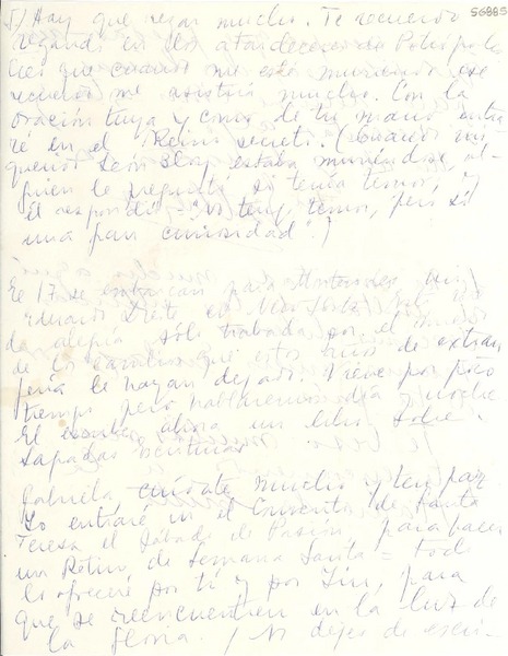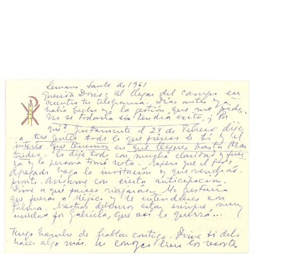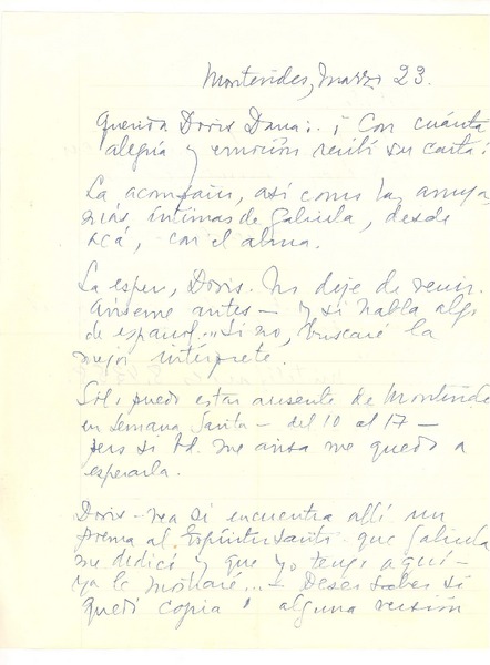 [Carta] 1961 Semana Santa, Montevideo, Uruguay [a] Doris Dana, [New York] [manuscrito] Esther de Cáceres.