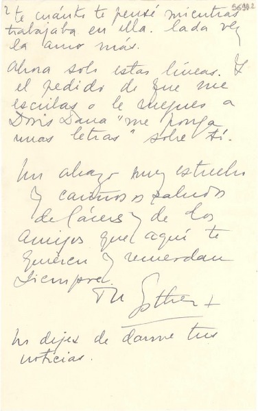 [Carta] [1956?], [Uruguay] [a] Gabriela [Mistral] [manuscrito] Esther [de Cáceres].