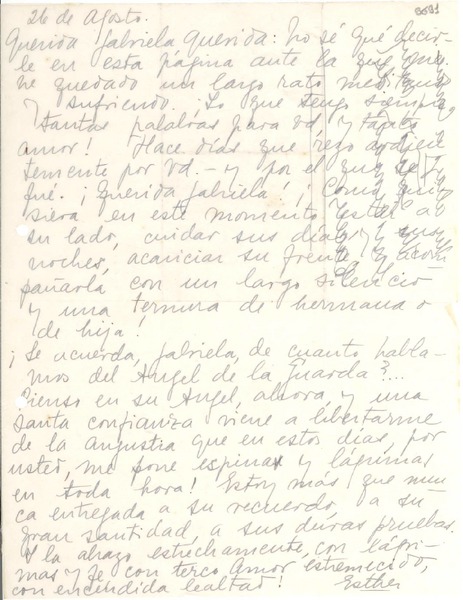 [Carta] 1943 ago. 26, [Uruguay] [a] Gabriela Mistral [manuscrito] Esther de Cáceres.