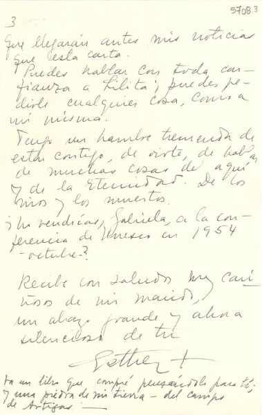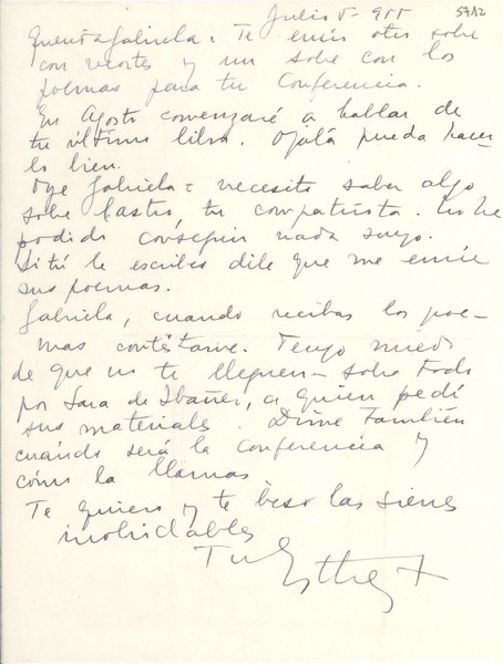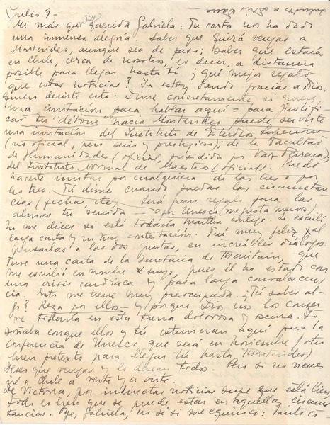 [Carta] 1954 jul. 9, [Uruguay] [a] Gabriela Mistral [manuscrito] Esther de Cáceres.