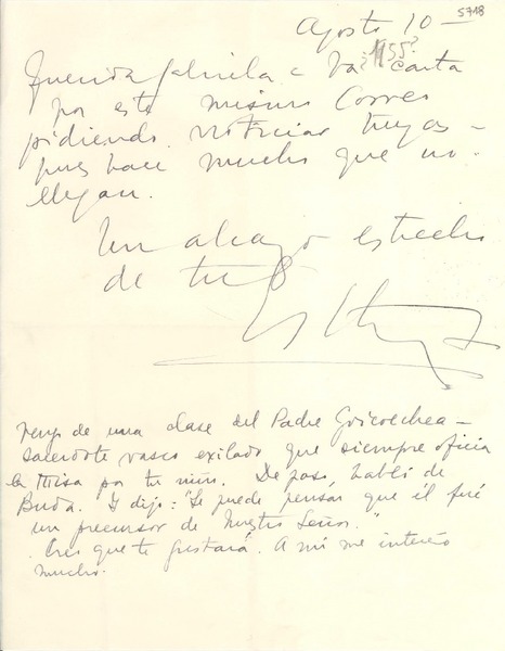 [Carta] [1955?] ago. 10, [Uruguay] [a] Gabriela [Mistral] [manuscrito] Esther [de Cáceres].
