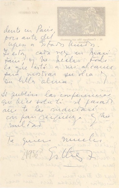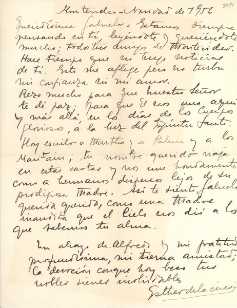 [Carta] 1956 dic. 25, Montevideo, [Uruguay] [a] Gabriela [Mistral] [manuscrito] Esther de Cáceres.