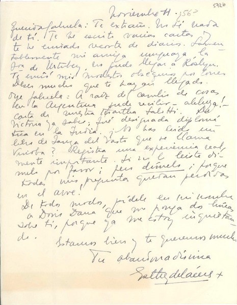 [Carta] [1956?] nov. 4, [Uruguay] [a] Gabriela [Mistral] [manuscrito] Esther de Cáceres.