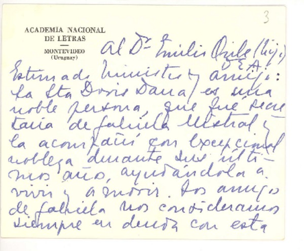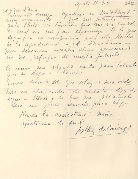 Cáceres, Esther de - Correspondencia - Manuscritos - Manuscritos uruguayos - Dana, Doris