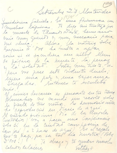 [Carta] 1954 sept. 27, Montevideo [a] Gabriela Mistral [manuscrito] Esther de Cáceres.