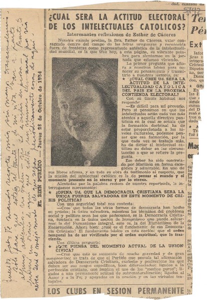 [Carta] 1954 oct. 28, [Uruguay] [a] Gabriela Mistral [manuscrito] Esther de Cáceres.