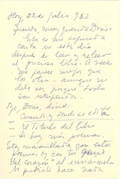 [Carta] 1962 jul.22 [Montevideo, Uruguay] [a] Doris Dana, [New York] [manuscrito] Esther de Cáceres.
