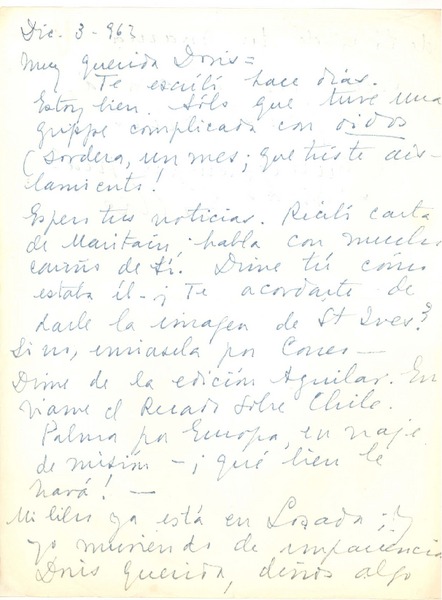 [Carta] [1963] dic. 10 [Montevideo, Uruguay] [a] Doris Dana, [New York] [manuscrito] Esther de Cáceres.