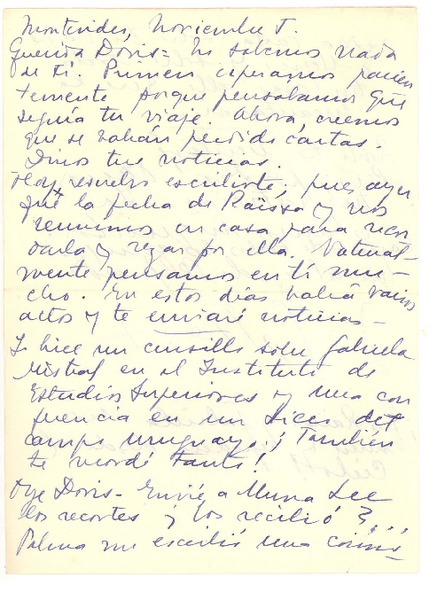 [Carta] [1960], Montevideo, Uruguay [al] Doris Dana [Montevideo] [manuscrito] Esther de Cáceres.