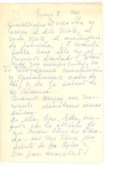 [Carta] 1963 ene. 8, [Montevideo, Uruguay] [a] Doris Dana, [New York] [manuscrito] Esther de Cáceres.