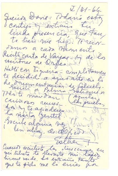 [Carta] 1966 ene. 31, Montevideo, [Uruguay] [a] Doris Dana, [New York] [manuscrito] Esther de Cáceres.