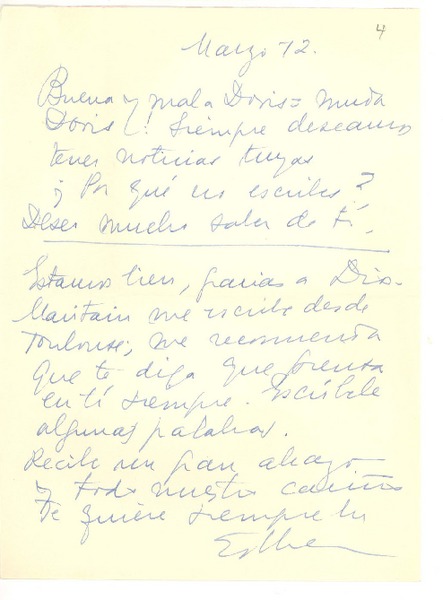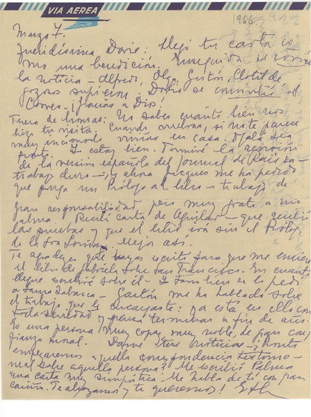 [Carta] [1966] mar. 12, Montevideo, Uruguay [al] Doris Dana [New York] [manuscrito] Esther de Cáceres.
