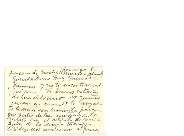 [Tarjeta] [1966?], [Montevideo], [Uruguay] [al] Doris Dana [New York] [manuscrito] Esther de Cáceres.