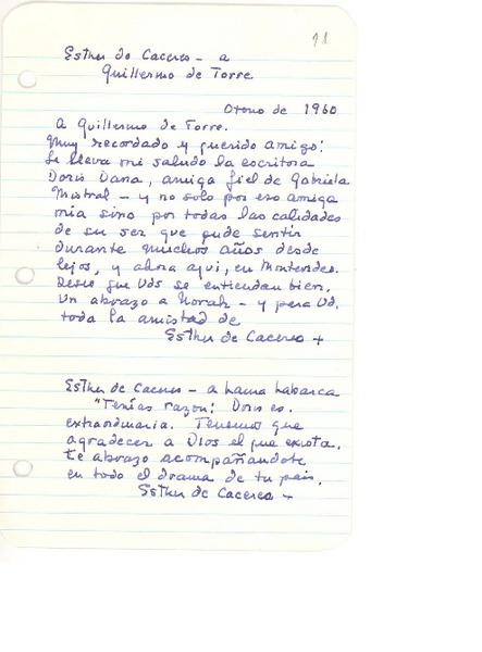 Cáceres, Esther de - Correspondencia - Manuscritos españoles - Torre, Guillermo de