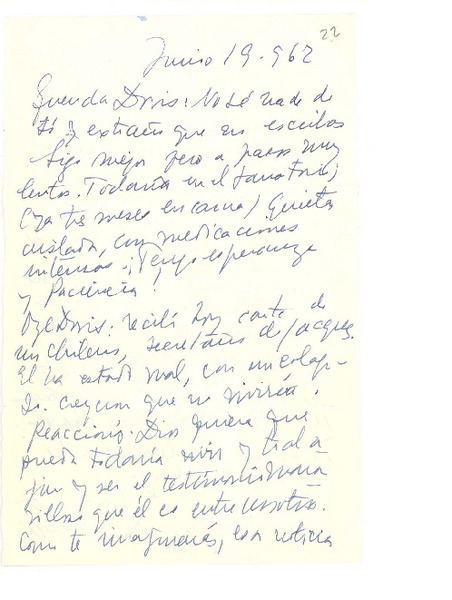 [Carta] [1962?] jun. 22, [Montevideo, Uruguay] [a] Doris Dana, [New York] [manuscrito] Esther de Cáceres.