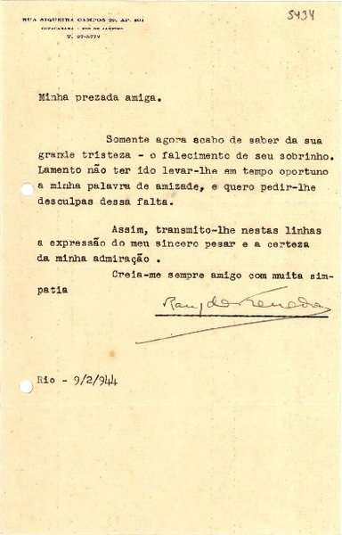 [Carta] 1944 feb. 9, Rio de Janeiro [a] [Gabriela Mistral] [manuscrito] Raúl de Azevedo.